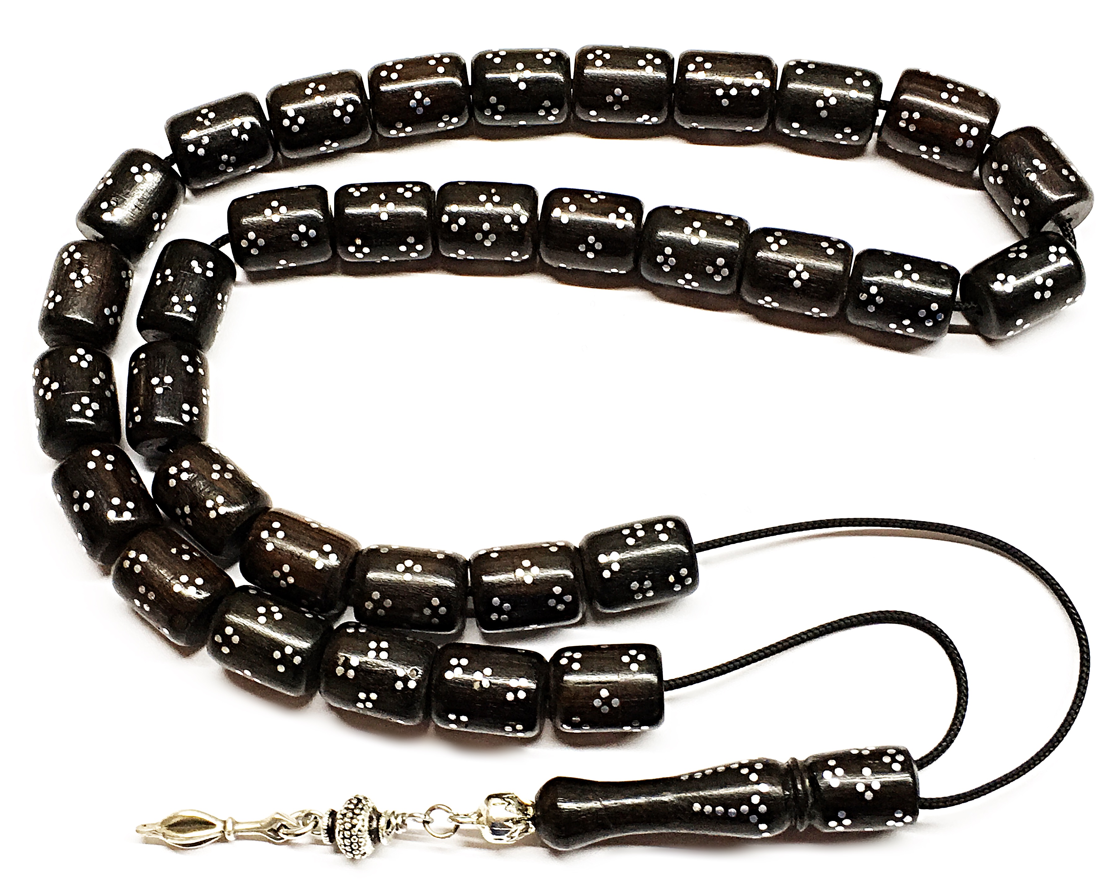 Κομπολόι 33άρι από Έβενο κεντημένο με ασήμι