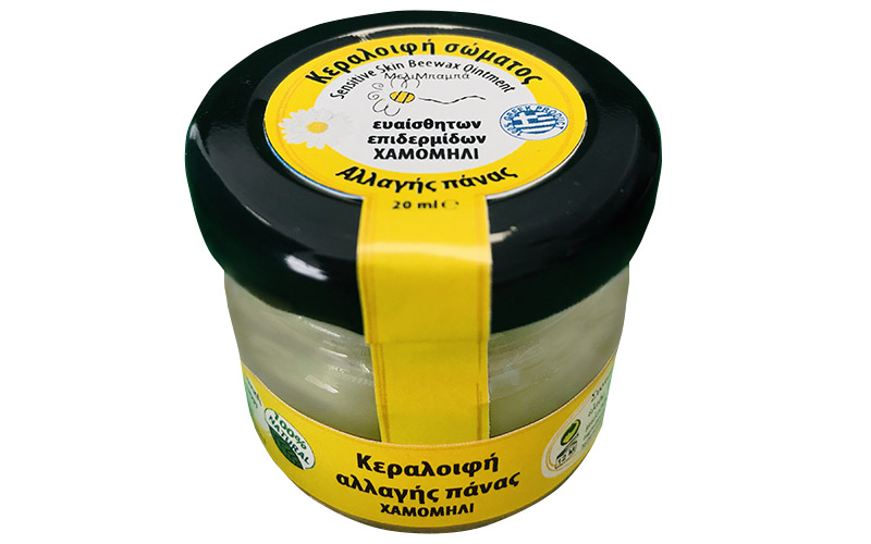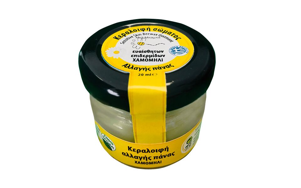 Η κηραλοιφή ως φυσικό καλλυντικό αντιμετωπίζει και αποτρέπει προβλήματα παιδικής και ευαίσθητης επιδερμίδας όπως: συγκάματα, τσιμπήματα, σπυράκια, ερεθισμούς, ήπια εγκαύματα, γρατζουνιές, τοπικές πληγές, ιδανική για την φροντίδα κατά την αλλαγή παιδικής πάνας, του μητρικού στήθους και των ευαίσθητων επιδερμίδωνSensitive Skin Beewax Ointment Treats and prevents child's and sensitive skin problems such as rash, bites, pimples, irritation, mild burns, scrapes, local wounds, ideal for care when changing child's diaper