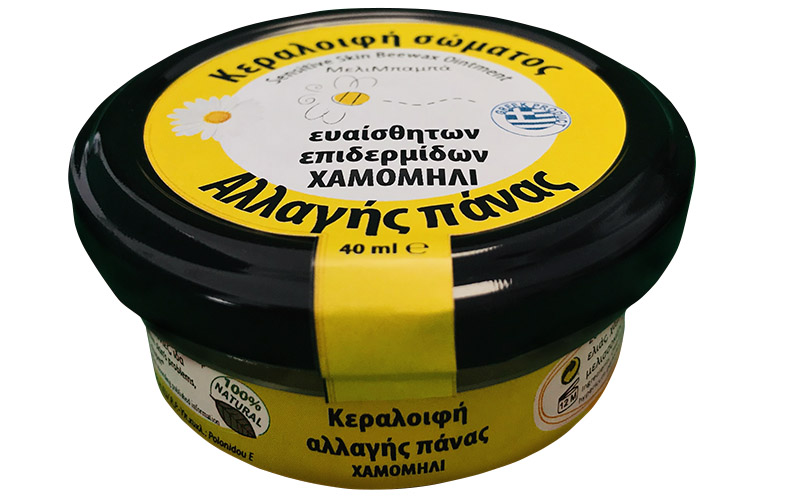 Η κηραλοιφή ως φυσικό καλλυντικό αντιμετωπίζει και αποτρέπει προβλήματα παιδικής και ευαίσθητης επιδερμίδας όπως: συγκάματα, τσιμπήματα, σπυράκια, ερεθισμούς, ήπια εγκαύματα, γρατζουνιές, τοπικές πληγές, ιδανική για την φροντίδα κατά την αλλαγή παιδικής πάνας, του μητρικού στήθους και των ευαίσθητων επιδερμίδων Sensitive Skin Beewax OintmentTreats and prevents child's and sensitive skin problems such as rash, bites, pimples, irritation, mild burns, scrapes, local wounds, ideal for care when changing child diaper