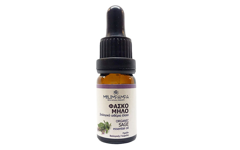 Το αιθέριο έλαιο φασκόμηλο είναι βιολογικό και βρώσιμο, ενισχύει τη φυσική άμυνα του οργανισμού έχει έντονα αντιμικροβιακές ιδιότητες, καταπολεμά φλεγμονές, τονώνει, ανακουφίζει άμεσα από τους πόνους της περιόδου, μυϊκούς και ρευματικούς. Δρα κατά του άγχους, κατάθλιψης, έντασης, αϋπνίας. Είναι αναλγητικό, βοηθά στην αποσυμφόρηση του αναπνευστικού, λόγω κρυολογήματος. Συντελεί στη μείωση του τοπικού πάχους γιατί μειώνει την κατακράτηση υγρών ενώ μπορεί να δυναμώσει το τριχωτό της κεφαλής, αρωματίζει την ατμόσφαιρα, μπορεί να χρησιμοποιηθεί σαν αποσμητικό ενώ θεωρείται αφροδισιακό αιθέριο έλαιο.Μπορείτε να εκμεταλλευτείτε τις ευεργετικές ιδιότητες του φασκόμηλου με πολλούς τρόπους, να προσθέσετε λίγες σταγόνες σε διάφορα προϊόντα ή να το διοχετεύσετε στο χώρο σας.Ρίξτε μερικές σταγόνες σε νερό και αφήστε να εξατμιστεί ή τοποθετήστε σε συσκευή ρεσό πάνω από κεράκι. Εμποτίστε σκληρό χαρτόνι, τοποθετήστε σε διάφορα σημεία και εκμεταλλευτείτε τις ιδιότητές του αιθέριου ελαίου πολύ οικονομικά, ανανεώνοντας όσο συχνά θέλετε. Διατίθεται με πρακτικό σταγονόμετρο σε σκουρόχρωμο φαρμακευτικό φιαλίδιο με καπάκι ασφαλείας