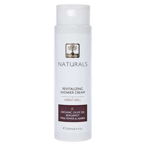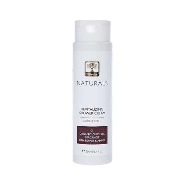 Bioselect naturals αναζωογονητικό κρεμώδες αφρόλουτρο orient spell με βιολογικό λάδι ελιάς, περγαμότο, ροζ πιππέρι και κεχριμπάρι.
