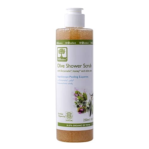 Bioselect organic αφρόλουτρο peeling σώματος με Dictamelia, Μέλι και κουκούτσια Ελιάς.