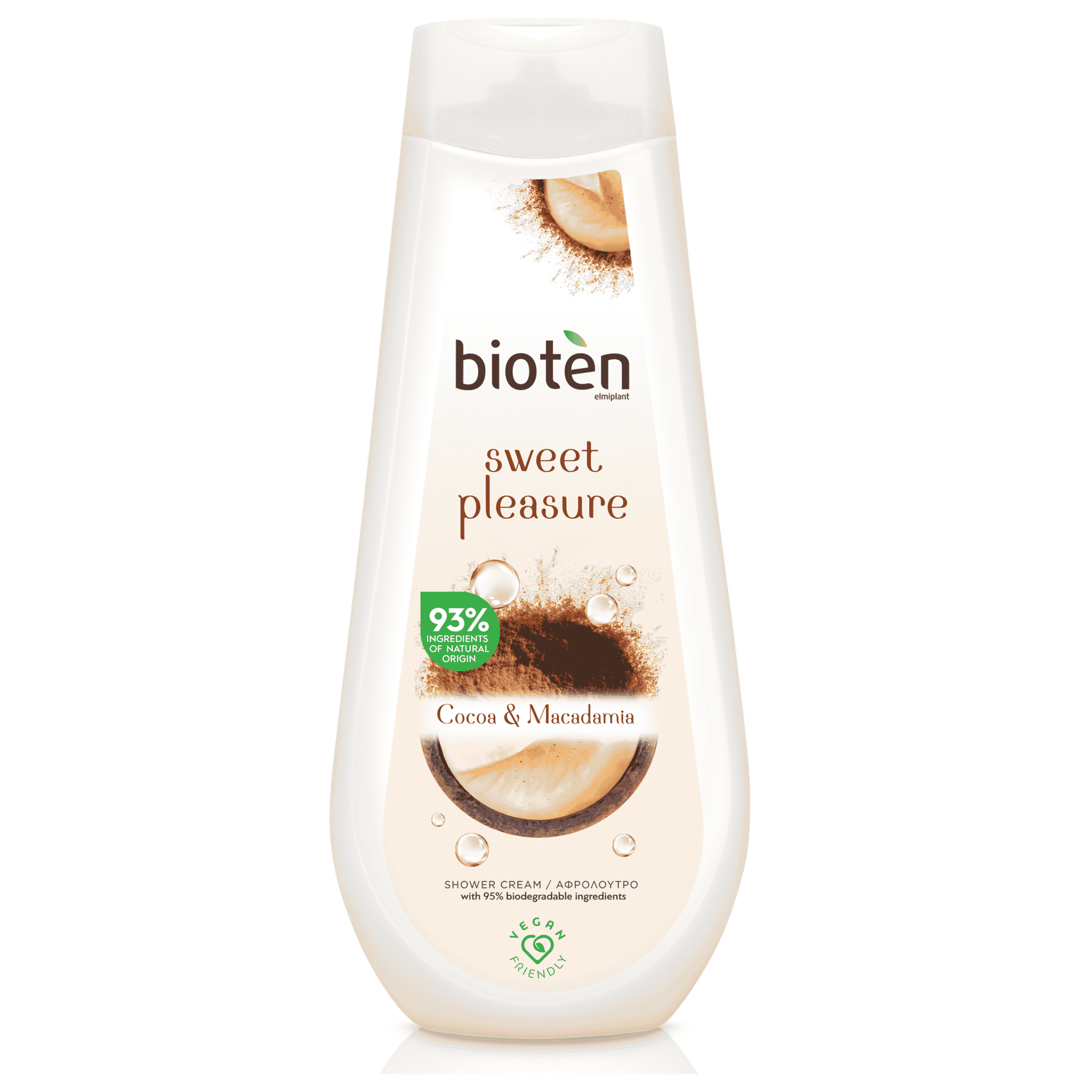 To αφρόλουτρο Shower Cream Sweet Pleasure είναι εμπλουτισμένο με 100% Βιολογικό Shea Butter, που βοηθά στη διατήρηση των ιδανικών επιπέδων υγρασίας, προσφέροντας στο δέρμα σας φυσική και απαλή φροντίδα.