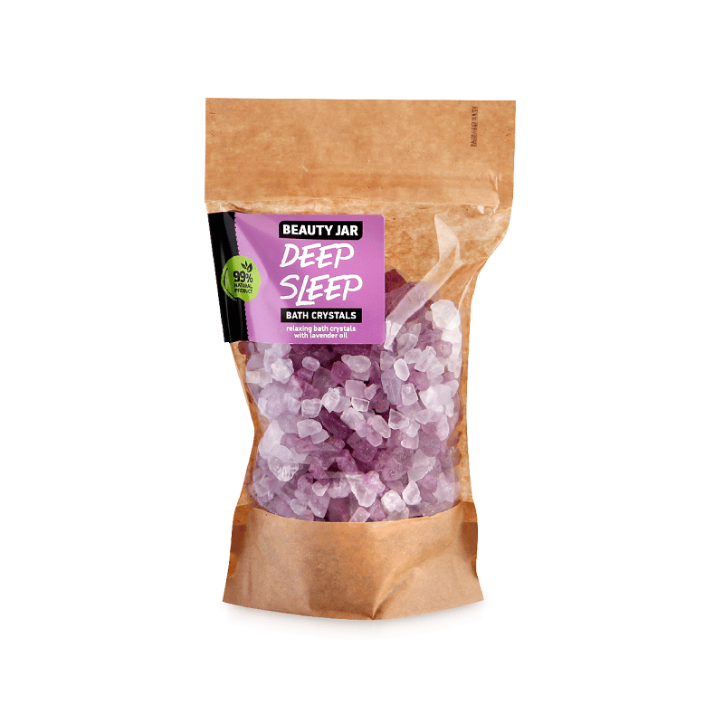 Beauty jar “DEEP SLEEP” χαλαρωτικοί κρύσταλλοι μπάνιου με έλαιο Λεβάντας. 99% φυσικά συστατικά Χωρίς SLS, Parabens και πειράματα σε ζώα.