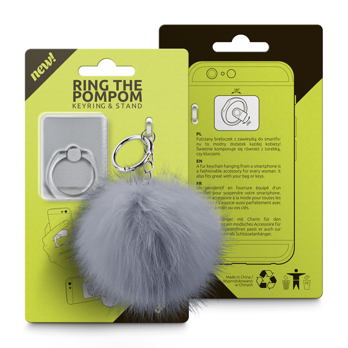 Βάση Στήριξης Δαχτυλίδι Κινητού και Μπρελόκ 2in1 Ring The PomPom Grey-Silver