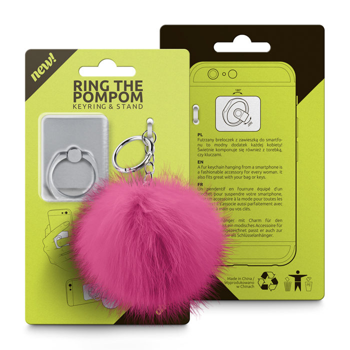 Βάση Στήριξης Δαχτυλίδι Κινητού και Μπρελόκ 2in1 Ring The PomPom Hot Pink - Silver
