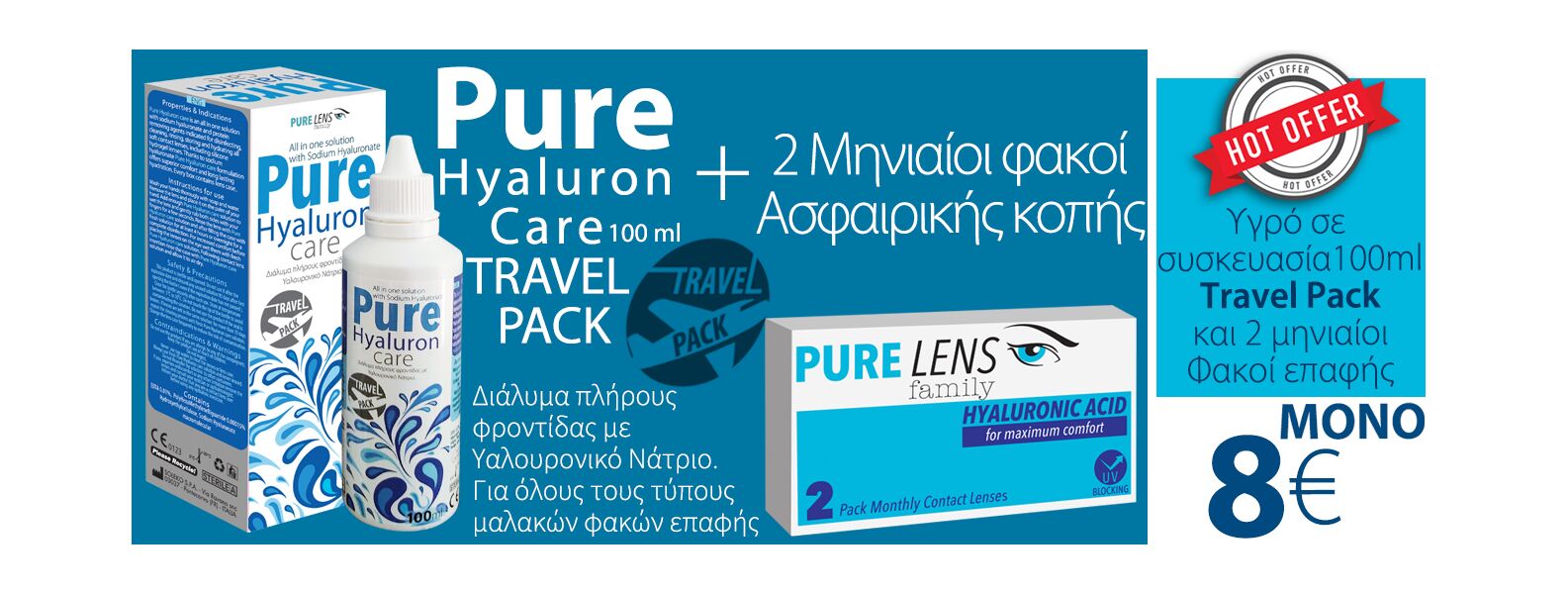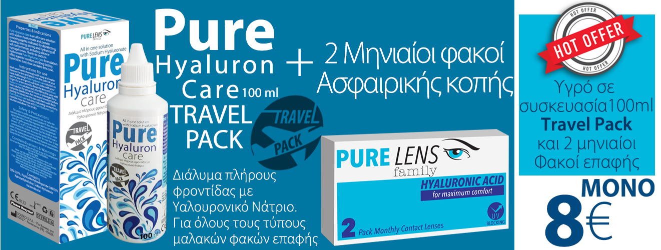 Pure Lens Hyalouronic ΜΥΩΠΙΑΣ ΜΗΝΙΑΙΟΙ - 2 ΦΑΚΟΙ+ Pure Hyaluron Care 100ml (ΜΕΜΟΝΩΜΕΝΑ ΤΜΧ. ΧΩΡΙΣ ΚΟΥΤΙ)