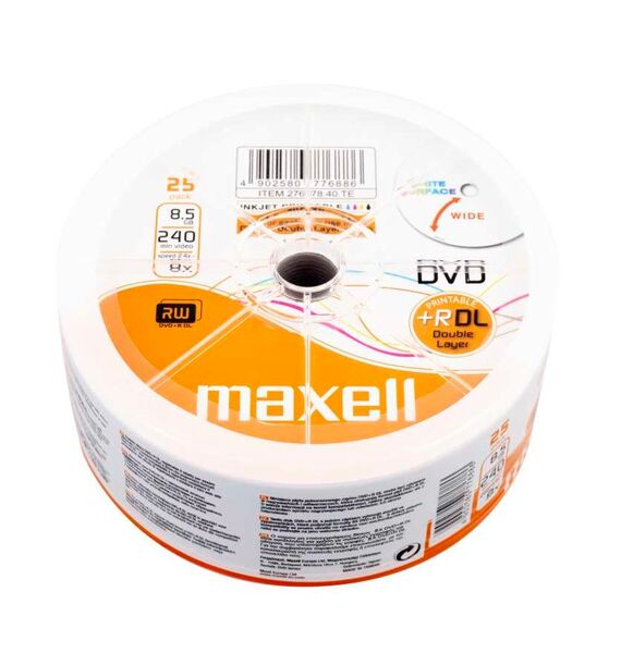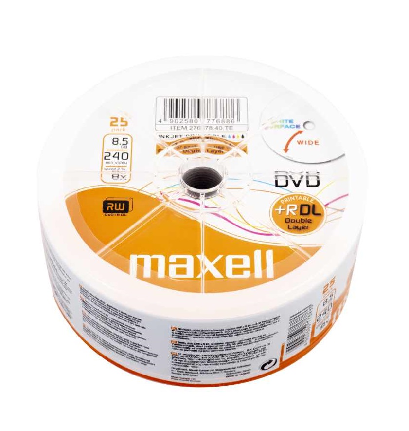 Maxell F.F Printable DVD+DL 8.5GB/240 min 8x 25 Τεμ.σε Ζελατίνα