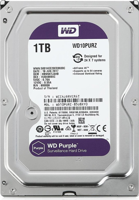 Εσωτερικός Σκληρός Δίσκος Western Digital Purple 1TB 3.5" (WD10PURZ)