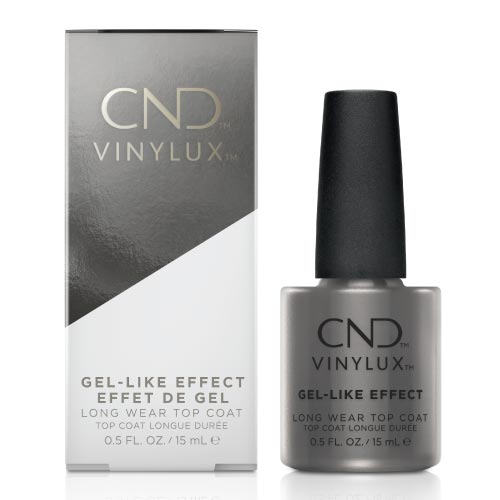 Top Coat Vinylux Gel-Like Effect είναι ένα ισχυρό, παχύρρευστο top coat για τη σειρά βερνικιού νυχιών μακράς διάρκειας CND Vinylux με λάμψη σαν αυτή του τζελ, που όμως αφαιρείται γρήγορα και εύκολα σαν ένα παραδοσιακό βερνίκι νυχιών.