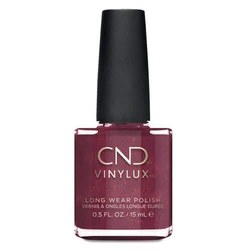 Βερνίκι Vinylux Masquerade 130 σε σκούρα μπορντό απόχρωση, με μια ελαφριά μεταλλική λάμψη.