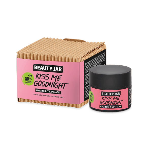 Beauty jar “KISS ME GOODNIGHT” μάσκα νυκτός χειλιών με Αμυγδαλέλαιο, Έλαιο Καρύδας, Κηρήθρα, Κερί Candelilla. 99% φυσικά συστατικά Χωρίς SLS, Parabens και πειράματα σε ζώα.