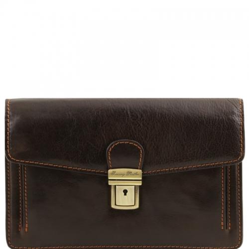 Ανδρικό Τσαντάκι Δερμάτινο Tommy-Καφέ σκούρο TL141442-DARK BROWN