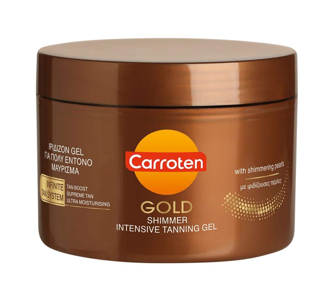 Carroten gold shimmer tanning gel SPF 0 Gold Gel για πολύ έντονο μαύρισμα! Προσδίδει μοναδικό και ταχύ αποτέλεσμα, χάρη στον ειδικά μελετημένο συνδυασμό πλούσιων λαδιών μαυρίσματος. Παράλληλα, βοηθά στην ενυδάτωση της επιδερμίδας, προστατεύοντάς τη από το ξεφλούδισμα, με το λάδι σουσαμιού και το εκχύλισμα καλέντουλας. Οι πέρλες λάμψης φωτίζουν την επιδερμίδα, χαρίζοντάς της έναν όμορφο χρυσαφένιο, φυσικό τόνο.
