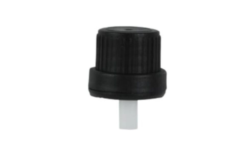 Καπάκι ασφαλείας PP18 σε μαύρο χρώμα, με εσωτερικό σταγονόμετρο (dropper) , το οποίο εφαρμόζει σε όλα τα φιαλίδια PP18.Η μεγάλη του διάσταση δίνει μια πολύ αισθητική μορφή στη συσκευασία σας.Διατίθεται μαζί με το εσωτερικό σταγονόμετρο.Βάρος: 3 gr