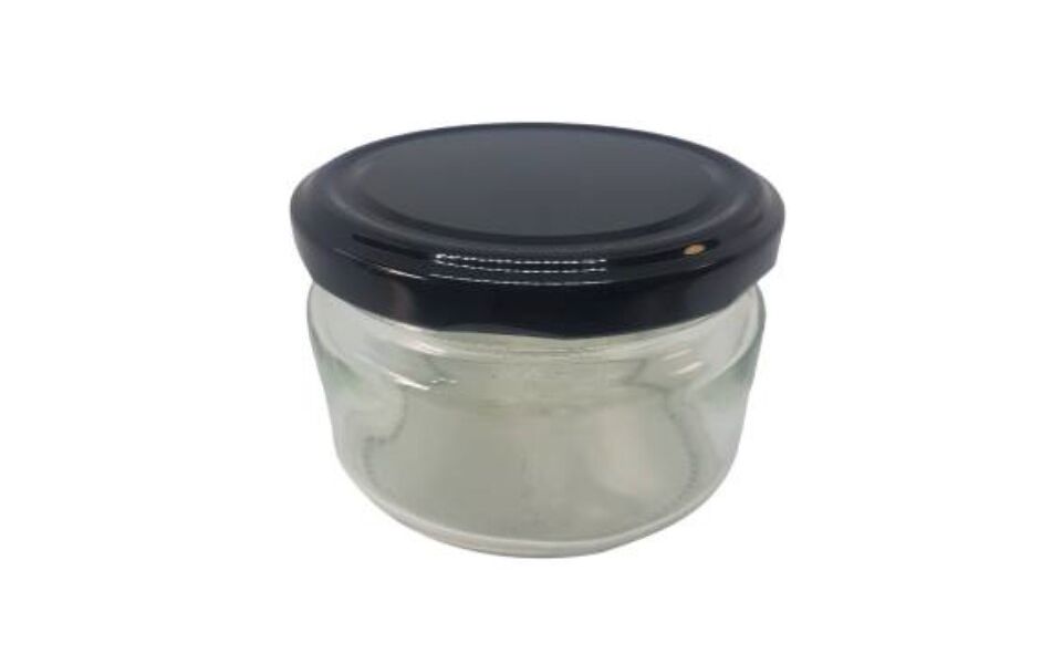 Βάζο γυάλινο διάφανο κατάλληλο για τρόφιμα και καλλυντικά σκευάσματα όπως κρέμες διαφόρων χρήσεων, gel, άργιλο, βιταμίνες, κηραλοιφές και άλλα προϊόντα καλλυντικής φύσεως ή τροφίμωνΔιατίθεται με μαύρο μεταλλικό καπάκι.Στην τιμή περιλαμβάνεται το βάζο και το σκούρο καπάκι.Χαρακτηριστικά προϊόντος:Βάρος: 157 grΧωρητικότητα 228 ml