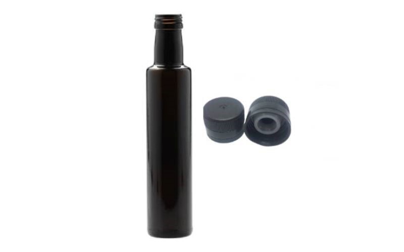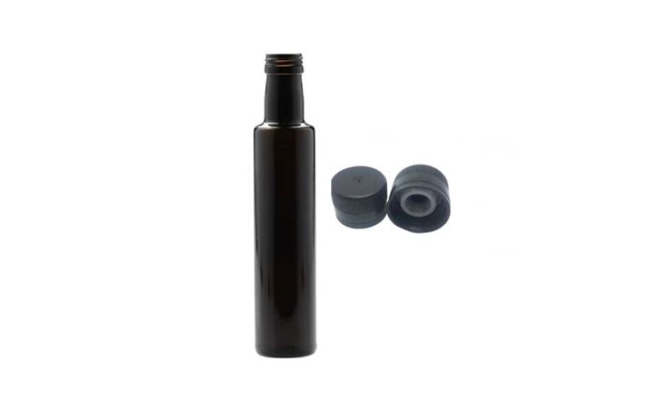 Φιάλη τύπου dorica σε διαφανές χρώμα κατάλληλη για ελαιόλαδο ή ποτά όπως κονιάκ κλπ.Διατίθεται με πώμα εσωτερικού σταγονόμετρου τύπου PP31.5.Στην τιμή περιλαμβάνεται η φιάλη και το πώμα.250ml