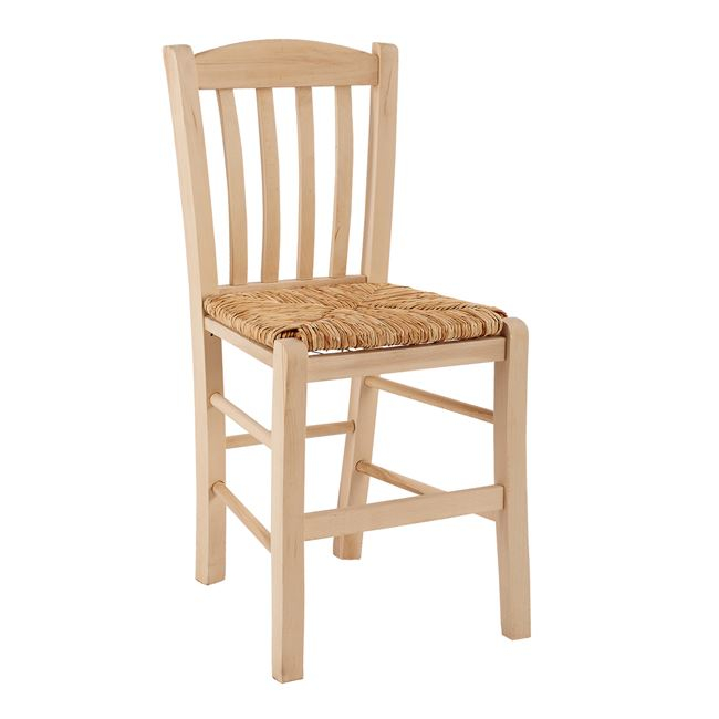 Καρέκλα καφενείου από μασίφ ξύλο φουρνιστής οξιάς άβαφο και ψάθα. Κατάλληλο για ταβέρνα, καφενείο, αλλά και γενικότερα για χώρους διακοσμημένους με το κλασικό Ελληνικό παραδοσιακό ύφος. Πολύ γερός και ανθεκτικός σκελετός, κατασκευασμένος από 100% μασίφ ξύλο οξιάς. Διαστάσεις: 41x35x89 εκ. Ύψος καθίσματος: 48 εκ. Η καρέκλα HM10376.02 είναι δεμένη με σύρμα για μεγαλύτερη αντοχή και ανθεκτικότητα στο πέρασμα του χρόνου.