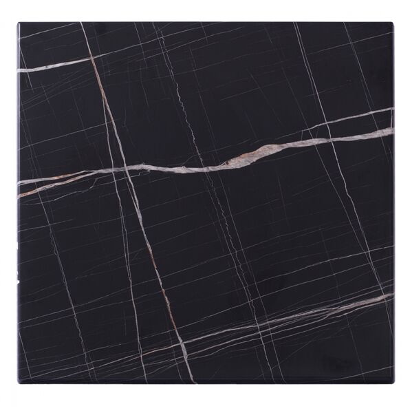 Επιφάνεια τραπεζιού werzalit 70X70 σε χρώμα μαύρο μάρμαρο με λευκές και μπεζ λεπτομέρειες. Οι επιφάνειες τραπεζίων werzalit original είναι γνωστές για την υψηλή αντοχή τους.Είναι ιδανικές για να εξοπλίσετε τον εσωτερικό αλλά και τον εξωτερικό σας χώρο αφού το υλικό κατασκευής τους είναι ιδανικό για να αντέχει στην υγρασία, στο νερό, στην ηλιοφάνεια και σε υψηλές θερμοκρασίες που έρχονται σε άμεση επαφή με την επιφάνεια του. Εξοπλίστε έξυπνα, όμορφα και οικονομικά τον επαγγελματικό σας χώρο και προπάντων λειτουργικά γλυτώνοντας κόπο από την συντήρηση τους. Πλεονεκτήματα: 1)Αντοχή στις γρατσουνιές. Αντέχει σε γρατσουνιές από πιρούνια, μαχαίρια, κλπ. 2) Δεν καίγεται από τσιγάρο. Αν πέσει τσιγάρο πάνω στην επιφάνεια δεν μένει σημάδι καψίματος πάνω σε αυτή. 3)Αντοχή στη βροχή. Δεν επηρεάζεται από υγρασία κ βροχή. 4)Αντέχουν σε έκθεση στον ήλιο ( εκτός από τα σκούρα χρώματα σε μεγάλες επιφάνειες) 5)Αντοχή ως 180 C. Αν αφήσουμε καυτό μαγειρικό σκεύος πάνω στην επιφάνεια δεν αφήνει σημάδι πάνω