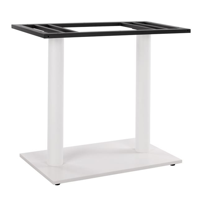 Βάση τραπεζιού διπλή HM435.12 κατασκευασμένη από μέταλλο σε λευκή ματ απόχρωση, με ρεγουλατόρους. Το κάτω μέρος της βάσης αποτελείτε από μέταλλο και τσιμέντο, με αποτέλεσμα να είναι πολύ ανθεκτική. Διαστάσεις στηρίγματος επιφάνειας: 80x40 εκ. Διαστάσεις βάσης: 70x40 εκ. Διαστάσεις σωλήνα: Φ7,6 εκ. Ύψος βάσης: 72 εκ. Η Βάση ενδείκνυται για επιφάνεια 120x70cm ή 120x80cm. Σημαντική Σημείωση Προσοχή: Οι ξυλόβιδες που περιέχονται στην συσκευασία για να βιδωθεί το καπάκι ενδέχεται να μην είναι κατάλληλες για το καπάκι που επιλέγετε. Ελέγχετε πάντα το ύψος της βίδας πριν βιδώστε.