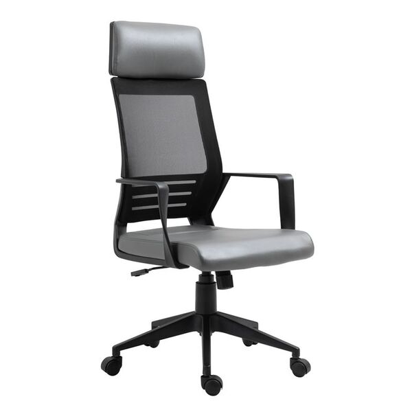 BF2500 Πολυθρόνα Γραφείου Διευθυντή Mesh Μαύρο - Pu Γκρι-ΕΟ607,2-Mesh/PVC - PU-1τμχ- 58x62x116/126cm