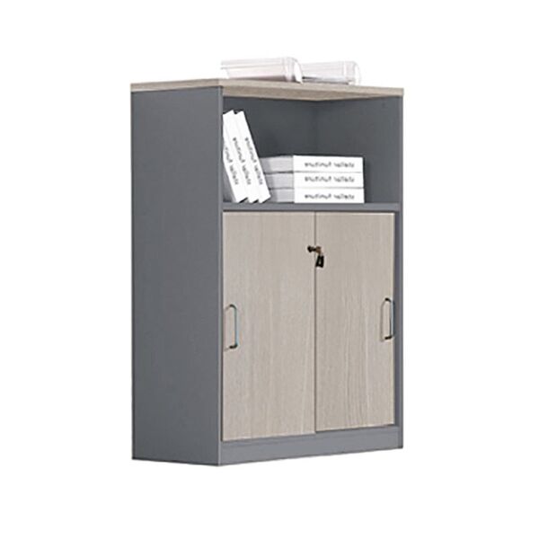 PROGRESS Ντουλάπι Γραφείου με Ράφι, Δίφυλλο Συρόμενες Πόρτες με 2 Ράφια, Απόχρωση Elm-Grey-ΕΟ816-Melamine-1τμχ- 80x40x120cm