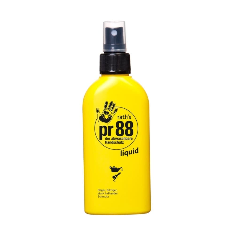 Υγρό - σπρέι προστασίας χεριών Rath's PR88. 50 χρόνια εμπειρίας! Κορυφαία προστασία από λάδια, γράσο και γενικά από δύσκολη βρωμιά. Δημιουργεί προστατευτικό φιλμ που αποτρέπει την βρωμιά να "κάτσει" στο δέρμα και ξεπλένεται εύκολα με νερό! Συσκευασία 150 ml.