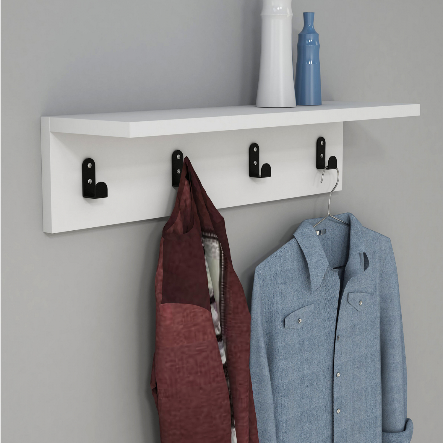 Κρεμάστρα εισόδου με λιτό σχεδιασμό, κατασκευασμένο από ανθεκτική μελαμίνη πάχους 18 χιλιοστών, σε λευκή απόχρωση. Διαθέτει όμορφο στυλ και ράφι στο πάνω μέρος της. Δημιουργήσετε έναν καλά οργανωμένο και τακτοποιημένο χώρο στην είσοδο του σπιτιού σας. Λύσεις που καταλαμβάνουν λιγότερο χώρο και αποτελούν μία πρακτική πρόταση διακόσμησης για τον χώρο υποδοχής του σπιτιού σας. Διαστάσεις: 60x16,3x14,5 εκ. Ευρωπαϊκής κατασκευής και προέλευσης. Το προϊόν διατίθεται αμοντάριστο σε εργοστασιακή συσκευασία.