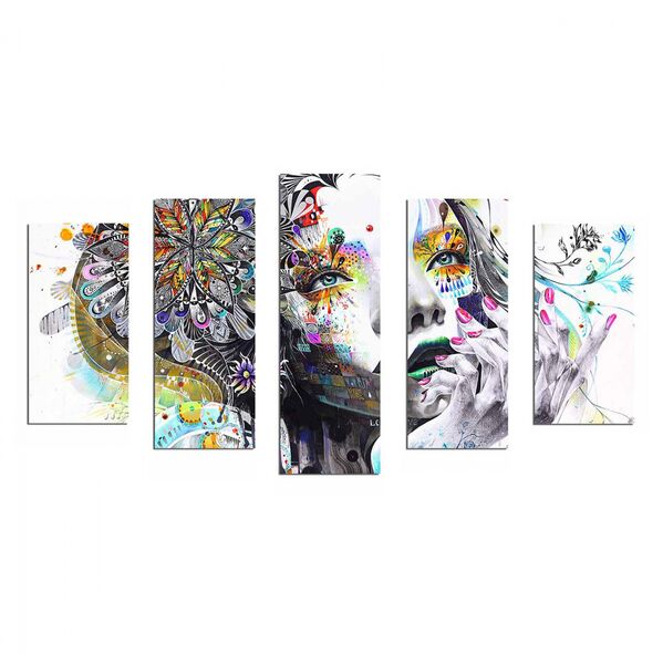 Οι διακοσμητικοί πίνακες δίνουν μια άλλη προοπτική στον χώρο μας και αναδεικνύουν τους τοίχους στους οποίους τοποθετούνται. Κλασικοί ή μοντέρνοι, σε ξύλο ή σε καμβά, αλλάζουν το σπίτι μας και την διάθεσή μας. Διακοσμητικός πεντάπτυχος πίνακας σε τυπωμένο mdf σε σχέδιο modern dazzling beauty girl face. Διαστάσεις A: 20x60 εκ. Διαστάσεις B: 20x50 εκ. x2 Διαστάσεις Γ: 20x40 εκ. x2 Πάχος: 3 χλστ. Ευρωπαϊκής κατασκευής και προέλευσης. Το προϊόν διατίθεται σε εργοστασιακή συσκευασία.