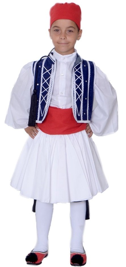 Παραδοσιακή Στολή Τσολιά με Λευκά Σιρίτια 6-12 Ετών MARK667 Τσολιάς Με καλύπτρες παπουτσιών Χωρίς Καλτσόν