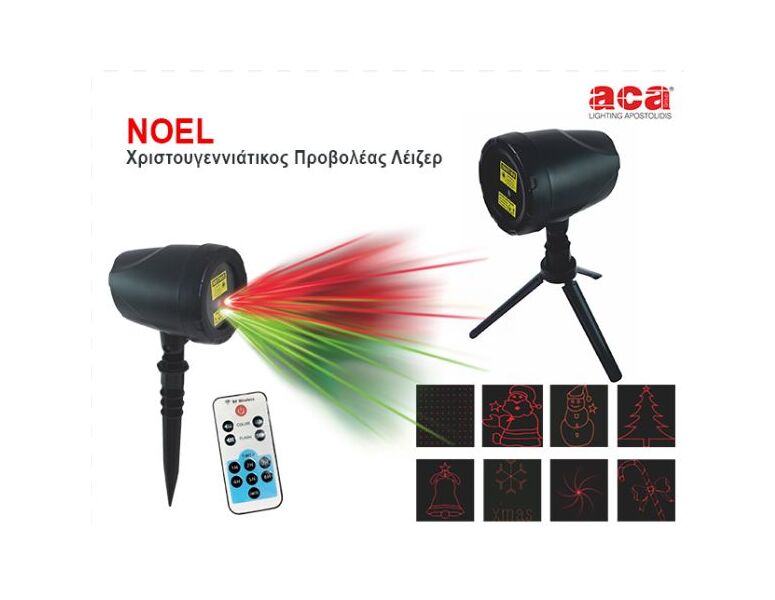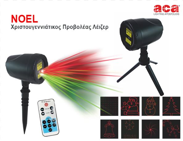 Χριστουγεννιάτικος Προβολέας Laser με Αισθητήρα Μέρας Νύχτας, 8 Χριστουγεννιάτικα Μοτίβα IP44 Εξ.χώρου NOEL