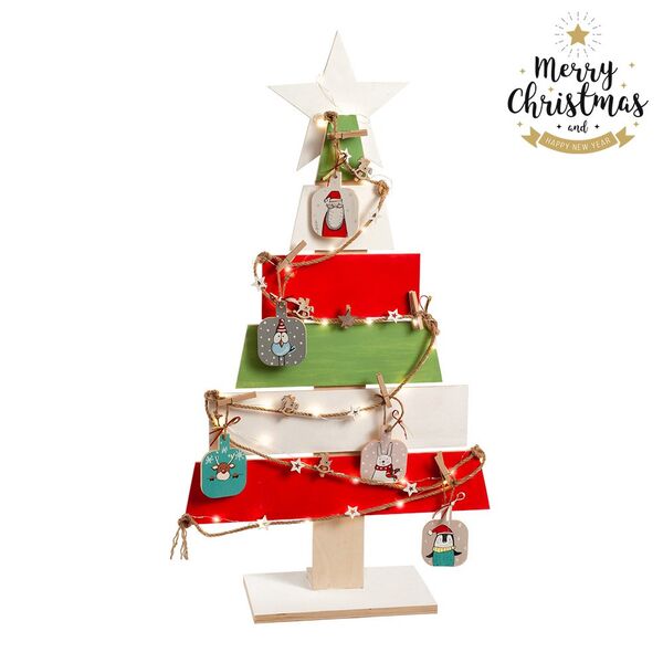 Ξύλινο διακοσμητικό δέντρο Χριστουγέννων με led φωτάκια και ξύλινα διακοσμητικά