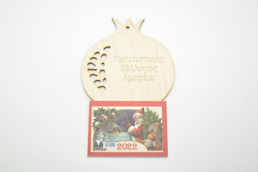 Ξύλινο Ημερολόγιο τοίχου ρόδι για σχολεία και συλλόγους με διάσταση 20 μήκος μαζί με το ημερολόγιο x 12 εκ πλάτος. Μπορούν να χαρακτούν τα στοιχεία του εκάστοτε σχολείου ή συλλόγου. Η τιμή αφορά ποσότητες απο 50 εώς 200 τεμάχια. Στην τιμή περιλαμβάνονται όλα τα υλικά ξύλινο διακοσμητικό, ημερολόγιο και γαντζάκι για να κρεμαστεί. Με επιπλέον χρέωση 0,20 μπορείτε να το πάρετε έτοιμο κολλημένα τα στοιχεία απο εμάς.