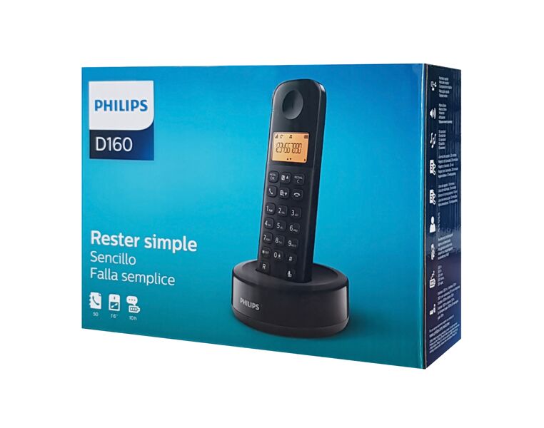 PHILIPS ασύρματο τηλέφωνο D1601B/34, με ελληνικό μενού, μαύρο