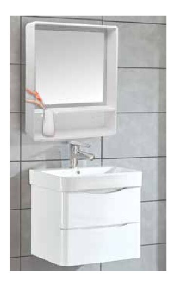 Το σετ περιλαμβάνει: 1x Πάγκος pvc λευκού χρώματος και διαστάσεων 58x44x45 1x Νιπτήρας πορσελάνης λευκός 60x45 1x Καθρέπτη pvc χρώματος λευκού 60x12x70h με led φωτισμό Η μπαταρία δεν συμπεριλαμβάνεται στην τιμή.