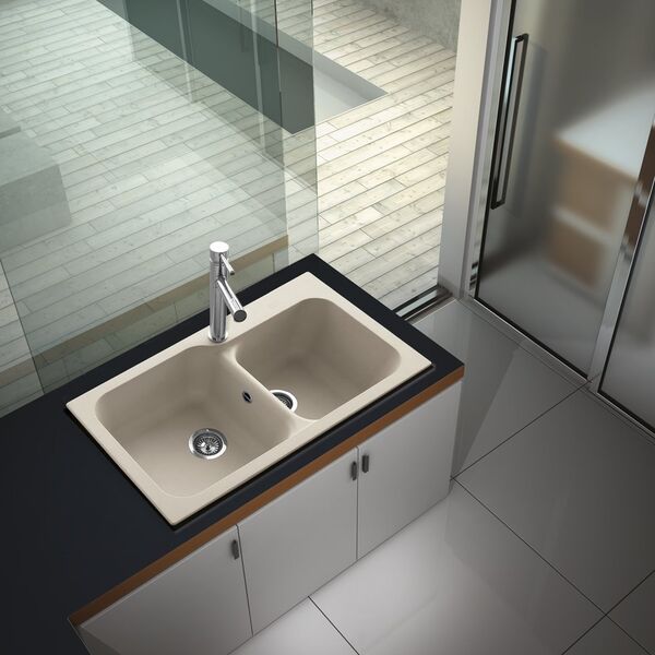 Νεροχύτης Συνθετικός Ένθετος 83*50cm 2 γούρνες για ερμάριο 80 εκ.Χρώμα Beige Avena Duralit KZ200