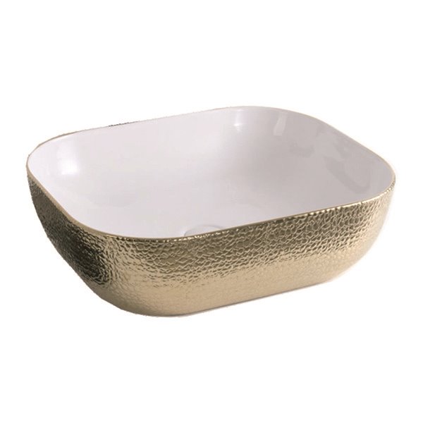 Νιπτήρας Ετιτραπέζιος Κεραμικός 50,5*40,5*13,5 εκ. Λευκό εσωτερικά Χρυσό Κροκοδειλέ εξωτερικά Domistyle Luxury R1302B