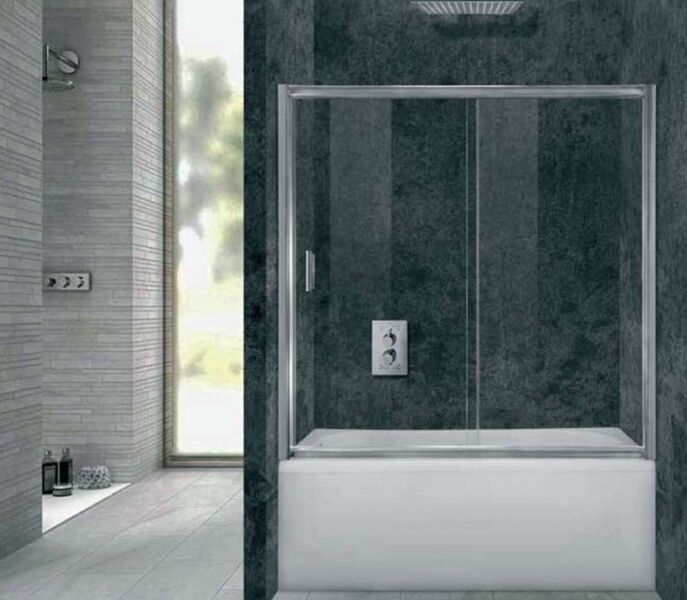 Πόρτα Μπανιέρας 125-130εκ. Ύψος 145εκ.1 Σταθερό-1 Συρόμενο Φύλλο, 6 χιλ. Διάφανο Κρύσταλλο, ΑΡΤΕΜΙΣ 2 211125130
