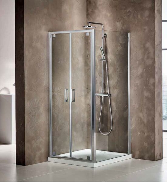 Πόρτα Ντουσιέρας 90 εκ. Προφίλ Χρώμιο 2 Ανοιγόμενα με άνοιγμα 63 εκ.Ύψος 185 εκ. 6 χιλ. Κρύσταλλο Clean Glass Axis Twin Pivot P2X90C-100