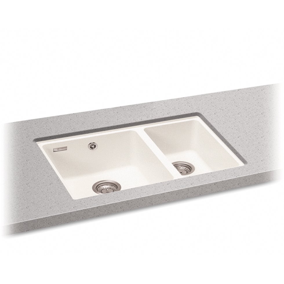 Νεροχύτης Γρανίτης Υποκαθήμενος 2 γούρνες Ερμάριο 90 εκ. Χρώμα White Carron Phoenix Fiji 5200U
