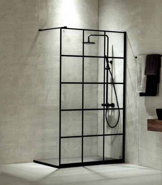Διαχωριστικό Ντουσιέρας 100 εκ. 200 εκ. Κρύσταλλο 8 χιλ. Decor Black Matt Clean Glass με Βραχίονα Στήριξης 100 εκ. Devon Iwis Walk-In IW100DC-400