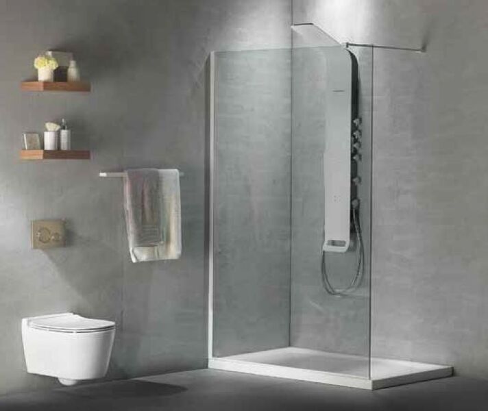 Διαχωριστικό Ντουσιέρας 140 εκ. 8 χιλ. Λευκό Προφίλ,Κρύσταλλο Clean Glass, Βραχίονας 100 εκ., Devon IW140C-300