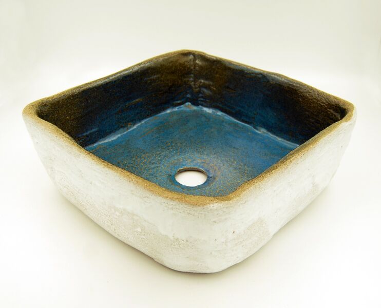 Νιπτήρας Κεραμικός Χειροποίητος 40*40 εκ. Μπεζ-Τυρκουάζ αποχρώσεις Art Collection AC204