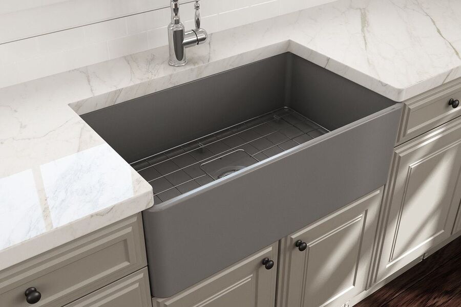Νεροχύτης Πορσελάνης Επικαθήμενος 76*46 εκ. Πυρίμαχος Grey Matt Bocchi 1138