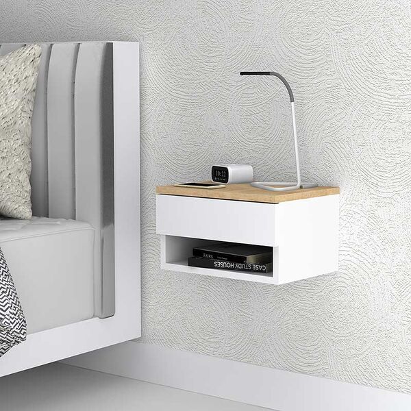 Κομοδίνο μελαμίνης Mary Megapap κρεμαστό χρώμα sonoma - λευκό 40x30x23εκ.