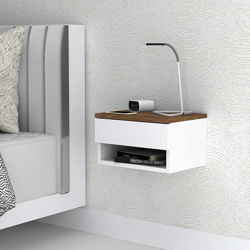 Κομοδίνο μελαμίνης Mary Megapap κρεμαστό χρώμα καρυδί - λευκό 40x30x23εκ.