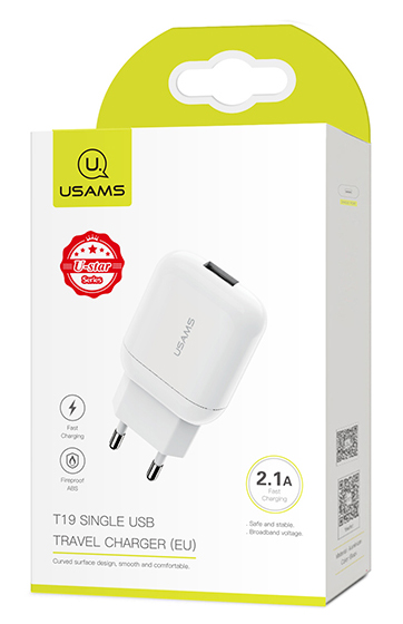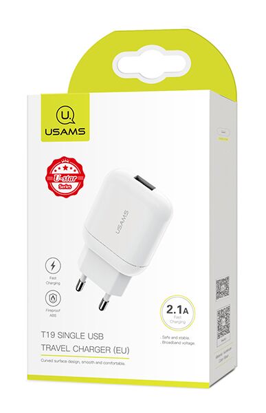Φορτιστής Τοίχου Usams T19, 1x USB, 2.1A, λευκός
