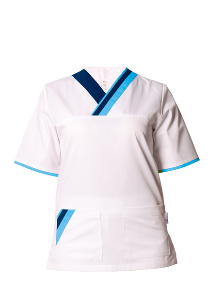 Marcel Tunic White Blue . Unisex κοντομάνικη μπλούζα με βε λαιμό και χρωματικής αντίθεσης λεπτομέρειες. Κατάλληλη για επάγγελμα ιατρικής, αισθητικής, σπα, φυσικοθεραπείας. Ποιότητα: ποπλίνα 65%πολυέστερ 35%βαμβάκι 160 gr / m 2. Ανεξίτηλη, ανθεκτική σε πλύσιμο υψηλής θερμοκρασίας, δεν τσαλακώνει και στεγνώνει γρήγορα. Με διακοσμητικές λωρίδες κοντράστ σε βε λαιμό και τσέπη. Πλαϊνά σκισίματα. Με τρεις τσέπες εμπρός. Ταιριάζει με ίδιας ποιότητας παντελόνι σε λευκό ή χρωματιστό, γυναικείο Barisa pants, unisex Simone pants. Χρώμα: Λευκό-Μπλέ.