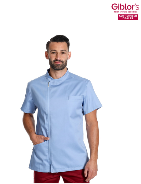 Ruggero km LightBlue. Κοντομάνικο ανδρικό σακάκι σε μοντέρνα και άνετη γραμμή με την υπογραφή της Giblor ’ s . Με όρθιο γιακά τύπου μάο. Με τσέπη στον ποδόγυρο και στήθος. Κλείσιμο με φερμουάρ διπλής κατεύθυνσης. Με πλαϊνά σκισίματα. Slim fit εφαρμογή. Ποιότητα: 50%βαμβάκι 50%πολυέστερ 180 gr / m 2 αναπνέον, δεν τσαλακώνει, γρήγορο στέγνωμα, ματ-σατέν, εξαιρετικά μαλακή αφή. Κατάλληλο για πλύσιμο σε υψηλή θερμοκρασία. Χρώμα: Σιέλ. Πιστοποίηση: EN ISO 13688