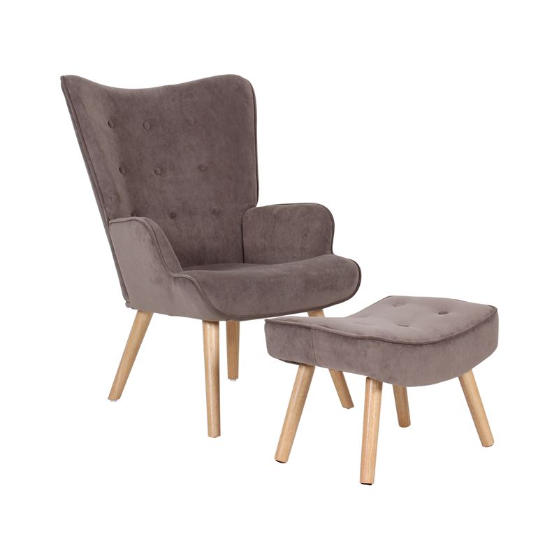 ALMA Πολυθρόνα - Μπερζέρα με Σκαμπό - Υποπόδιο Φυσικό Ύφασμα Velure Καφέ-Ε7141,8-Ύφασμα-1τμχ- 69x76x97cm / 52x38x35cm
